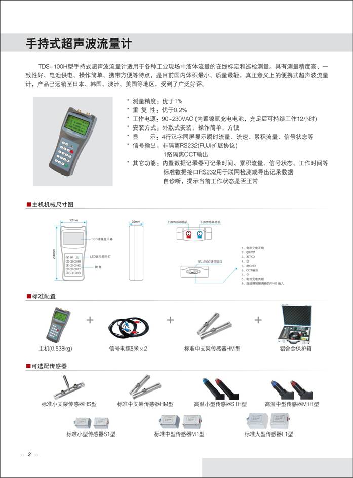 手持式超聲波流量計 一、概 述 AK-TDS-100H型手持式超聲波流量計利用了低電壓、多脈沖時差原理,采用高精度和超穩定的雙平衡信號差分發射、差分接收數字檢測技術來測量順流和逆流方向的聲波