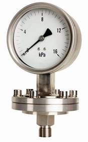 為了擴大各種通用型壓力儀表的使用范圍,能適用于測量強腐蝕、高溫、高粘度、易結晶、易凝固和有固體浮游物介質的壓力,以及對某些測量介質不能直接進入通用型儀表內和便于清洗防止沉淀物持積聚的場合的壓力檢測時,須采用由隔膜隔離器與通用型壓力儀表組成一個系統的隔膜表。 |