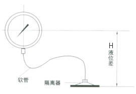 尤其是對于帶軟連接管的隔膜表,由于隔膜受壓部與通用型壓力表安裝位置不在同一水平面上,會產生液位差和影響量△P。在測量時更就注意。 |