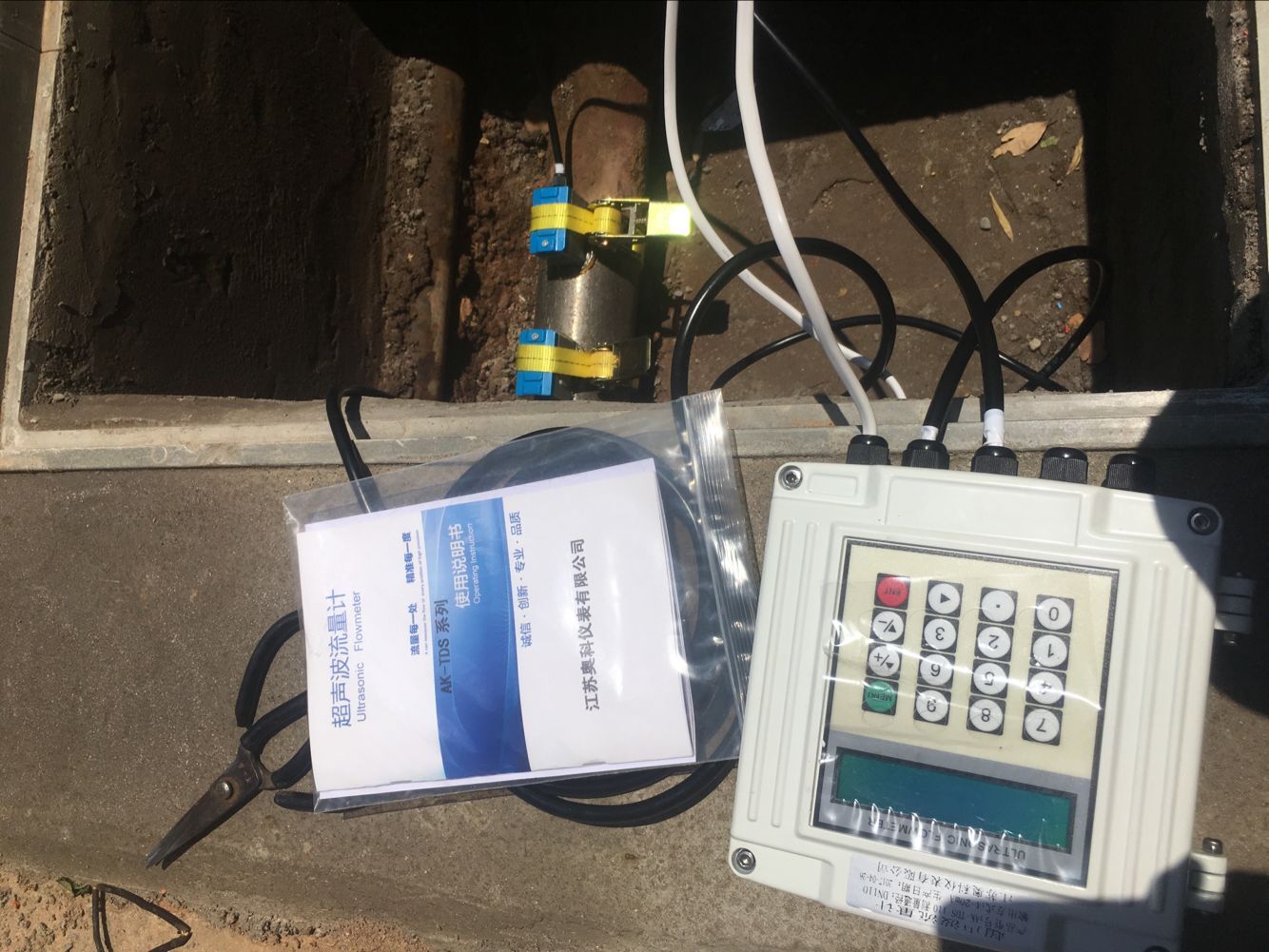 (5)把探頭牢牢地貼在管壁上,用布帶或鋼帶固定探頭(注意:兩探頭的發(fā)射方向須相對)。