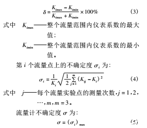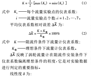 渦輪流量計的原理:當(dāng)被測流體流過傳感器時,在流體作用下,葉輪受力旋轉(zhuǎn),其轉(zhuǎn)速與管道平均流速成正比,葉輪的轉(zhuǎn)動周期改變磁電轉(zhuǎn)換器的磁阻值,檢測線圈中的磁通隨之發(fā)生周期性變化,產(chǎn)生周期性的感應(yīng)電勢,即電脈沖信號。基于渦輪流量計的測量原理,根據(jù)渦輪流量計檢定規(guī)程,確定了實(shí)流實(shí)驗(yàn)結(jié)果的評價指標(biāo),其中包括: 儀表系數(shù)、平均儀表系數(shù)相對誤差、線性度和不確定度。
